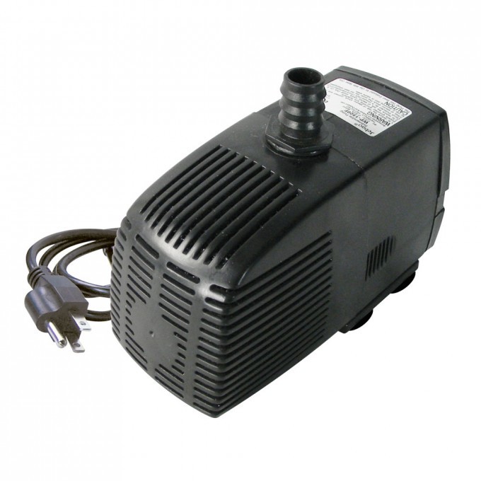 This 25-watt magnetic drive submersible pump pushes 400 gallons per hour, has a maximum head of 8 feet and includes suction cups for mounting as well as a foam filter to keep debris away from the impeller assembly. Specifications: 400GPH 8′ Maximum Pump Height 25 Watts